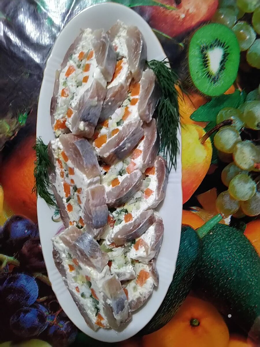 Вкусно #еда #закуска #меню #вдохновение Ингредиенты: Сельдь, Творожный сыр, Морковь отварная, Огурец свежий, Яйцо отварное, Зелень по желанию Способ приготовления: У меня филе сельди. Все очень просто. Первый сыр, потом морковь и огурцы, яйцо, зелень. Накрыть второй частью сельди, смотать плотно пищевой плёнкой и убрать под гнет в морозилку минут на 20-30. Затем перенести в холодильник. Перед подачей нарезать 😉. Готово!!!