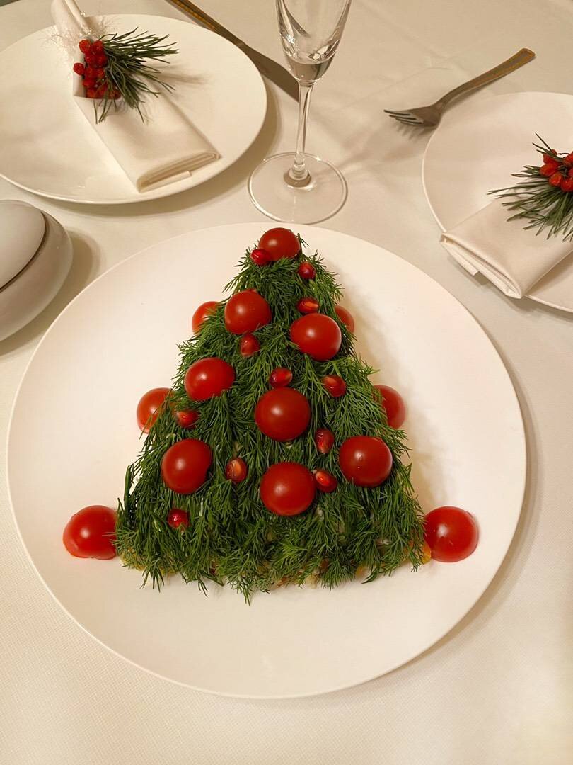 Ингредиенты: картошки, морковь, филе, яйца, маринованных огурца, майонез, укроп Способ приготовления: 🎄отвариваем грудку, 2 картошки, 1 морковь, 2 яйца. 🎄на крупной терке натираем овощи и яйца. 🎄в виде треугольника слоями выкладываем картофель, морковь, грудка порезанная, маринованный огурец, яйцо, каждый слой промазать майонезом. 🎄украшаем укропом, по желанию помидорками. 🎄Приятного аппетита.