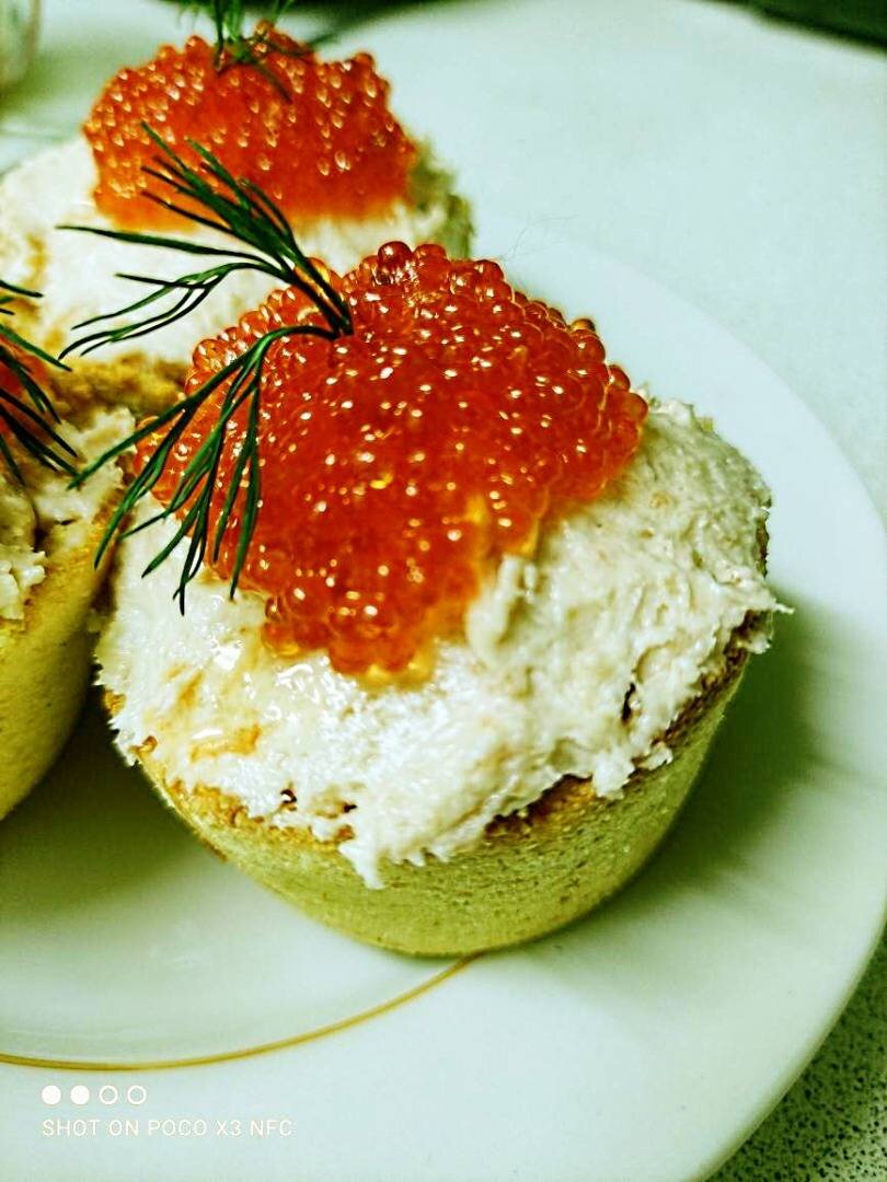 Ингредиенты: Продукты для начинки:, Филе лососевой рыбы слабосоленой (семга, форель, кета) , Сыр сливочный творожный типа Хохланд или Альметто , Икра красная для украшения, Укроп для украшения, Продукты для теста тарталеток:, Мука кокосовая , Яйцо крупное , Масло сливочное 82% мягкое , Соль , Разрыхлитель