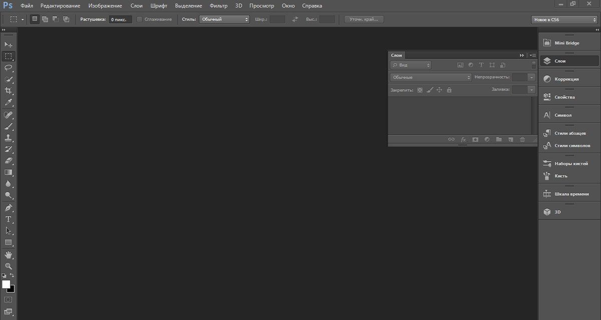 после создания холста мы встречаем перед собой тот же самый фотошоп но с прямоугольником: