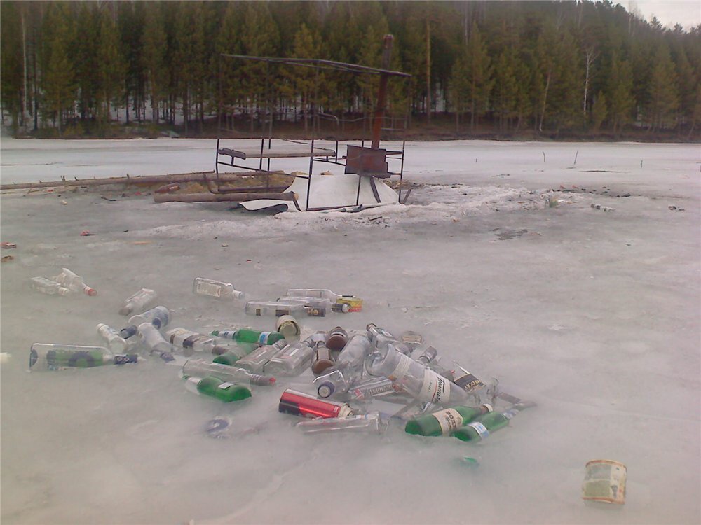 Потом приходил второй паром, тоже забитый рыбаками и в итоге народу было много даже в будни, не говоря уже о выходных. Пили практически все и без бутылки никто на рыбалку не ездил. Да еще и местные тетки с сумками мутного самогона бродили по льду, предлагая его тем, кому не хватило. Даже то, что вместо пробок бутылки были заткнуты газ