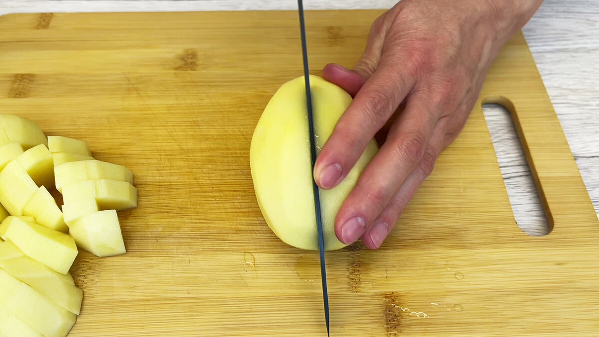 Жареная на сковороде картошка - быстрое блюдо, которое пользуется большой популярностью. Готовится она очень просто, а разнообразие вариантов бесконечное: с мясом, салом, овощами, в сметане. В этом рецепте я хочу предложить вам приготовить картофель с луком и перцем. Это один из вариантов разнообразить ужин из обычной жареной картошки. Блюдо получается вкусным и очень бюджетным. Перед тем, как приготовить жареную картошку на сковороде, нужно налить масло и хорошенько разогреть его – это один из секретов удачной жареной картошки. Нарезаем картофель. Наливаем воду в кастрюле и выкладываем нарезанный картофель в кастрюлю с водой для отварки 5,7 минут на среднем огне. Разогреваем сливочное масло в сковороде. Выкладываем отваренный картофель в сковороду. Солим картофель и перемешиваем. Нарезаем лук и добавляем его к картофелю. Перемешиваем картофель и лук. Нарезаем мелко болгарский перец. Добавляем перец в сковороду и перемешиваем. Натираем чеснок в картофель и перемешиваем. Обжариваем 5 ми