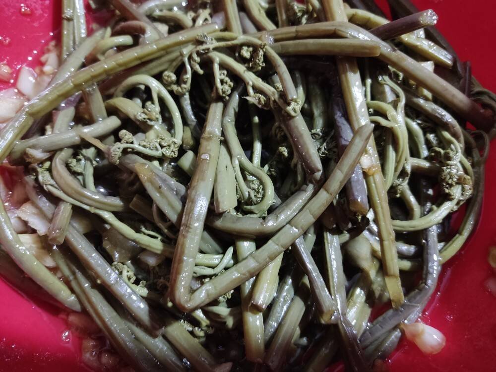 Ингредиенты: папоротник отварной, чеснок, лук репч, соль, перец красный молотый, соевый соус, уксус 9%, масло растит Способ приготовления: Отварной папоротник порезать на 3 части, выдавить чеснок, нарезать лук, посолить и поперчить, добавить соевый соус и уксус. Масло раскалить на сковороде до дымка. Залить папоротник, перемешать и дать настояться пару часов в холодильнике. Приятного аппетита!!