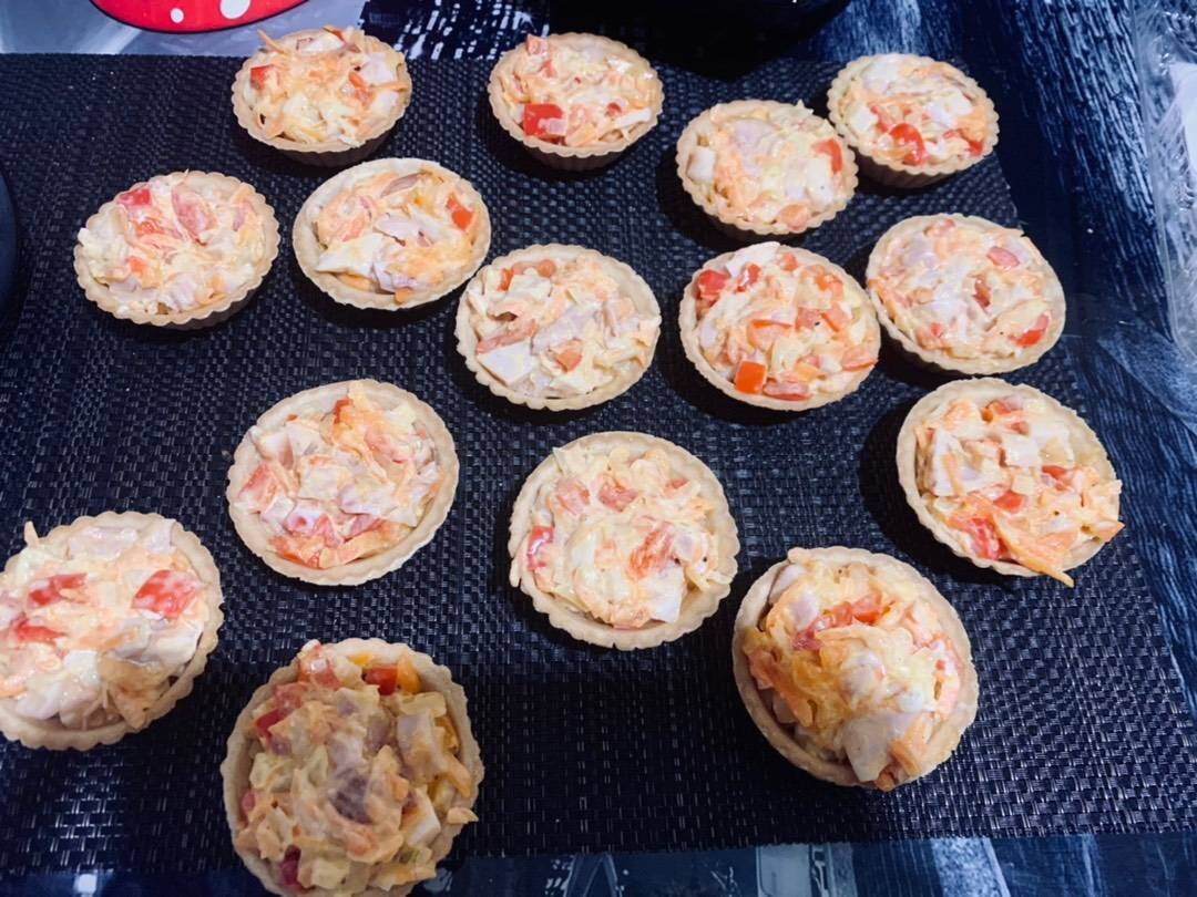 Ингредиенты: Копчёный куриный окорок (можно любую часть- голени, филе грудки, бёдра), Морковь, Лук (один крупный), Болгарский перец красный и жёлтый, Майонез , Масло растительное для жарки, Тарталетки крупные Способ приготовления: Нарезать мелко лук, натереть на крупной терке морковь, болгарский перец нарезать кубиками. Обжаривать овощи на растительном масле до мягкости (не тушить долго), можно добавить чайную ложку приправы (у меня смесь овощей). Разделать копчёную курицу, нарезать мелкими кубиками. Смешать с овощами, добавить майонез. Разложить получившуюся смесь в тарталетки, и убрать в холодильник на пару часов.🌹