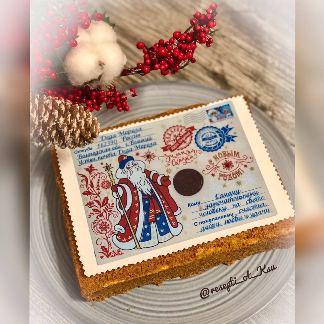 Новый Год – время волшебства и сказки. Ни одно застолье не проходит без сладкого! Торт-открытка отличное решение. Такой тортик можно приготовить на любой праздник, на нём можно напечатать всё, что угодно, ведь изображение изготовлено на съедобной сахарной бумаге! Любое ваше пожелание, рисунок или просто забавная картинка. #новыйгод #медовик #торт Ингредиенты: Для тесто:, сливочного масла, сахара, жидкого меда, соды, соли, После остывания карамельной массы, яйца c1, Мука , Крем, сливок, сахарной пудры, сметаны 30% Способ приготовления: Подготавливаем и взвешиваем все ингредиенты, чтобы на этот момент не отвлекаться. В сотейник выкладываем сливочное масло, сахар и мёд. Ставим сотейник на средний огонь. Доводим до кипения, периодически помешивая. Как только закипит сразу же добавляем соду. Когда масса начнёт пениться и подниматься в 2 раза, вы энергично перемешиваете массу на огне еще 1-2 минуты. ❗️поменяет цвет не пугайтесь. Снимаем с огня и ставим массу в прохладное место для остывания,