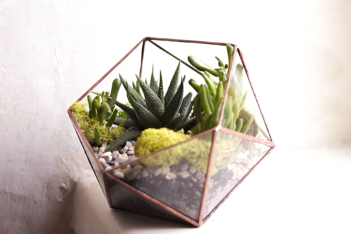 Началось всё с картинки в интернете. Красивые геометрические «теплички» с непроизносимым названием «флорариумы» очаровали меня, и идея самой создавать эти стеклянные штуки прочно засела у меня в голове. А что, я давно хотела монетизировать свою любовь к растениям, а это отличный вариант. И вот почему:
