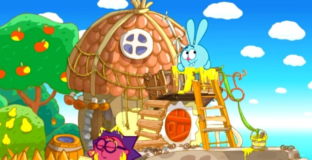 Всем привет.Сегодня я хотел бы немного отдохнуть от теорий и топов ПК,и рассказать про новые отсылки в смешариках,которые я нашёл.Приятного просмотра. 1)Серия "Господин оформитель". Серия "Господин Оформитель" ничем не примечательна.Но,если вы не знали,то название серии,это отсылка на советсикй фильм ужасов -Господин оформитель 1988 года.Так что,название взято оттуда. 2)Серия "Загвоздка". Во время чаепития,Карыч произносит знаменитую фразу Жоржа Милославского-"Это я удачно зашёл".Также,эта фраза была произнесена в мультфильме "Смешарики Начало". 3)Серия "Традиция" и "Чемодан". Как вы уже видите,сходства есть.В серии "Традиция",решили сделать также,как и в серии "Чемодан".Там Крош уезжает на безопиле,тут уезжает на болгарке.Совпадение,не думаю. 4)Серия "Иди и скажи". Безобидная серия,тут что случилось?Прикол в том,что название отсылает нас на ещё один советский фильм-"Иди и смотри".Я наверное единственный,кто догадался про эту отсылку.Хех. 5)Серия "Мне мёд тебе приключения". Ну тут нав