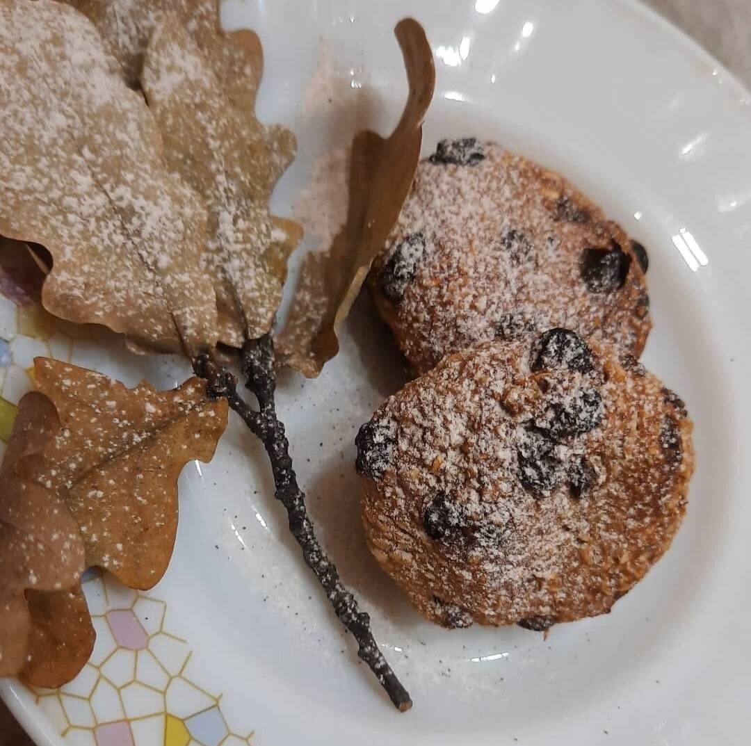 Ингредиенты: творога, овсяных хлопьев, банан, изюма, Я без сахара, т.к. банан сладкий Способ приготовления: С помощью блендера смешать творог, банан и овсяные хлопья, промыть изюм, обсушить и добавить к тесту, дать постоять 25 минут. Выложить на пергамент сформированные шарики, чуть приплюснуть. Выпекать 30 минут при 180 °. Когда остынут слегка присыпать сахарной пудрой. Приятного аппетита 😀