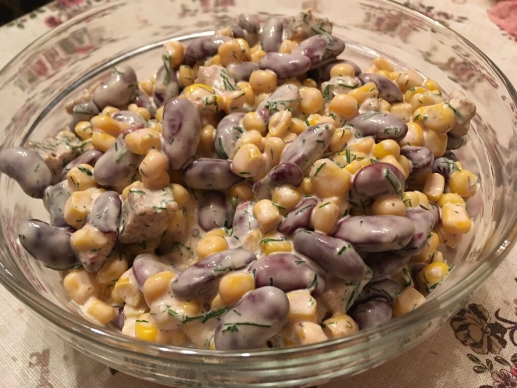 Если вы очень проголодались, а готовить вам лень, то этот салат именно для Вас. А главное, что все ингредиенты всегда есть в любом доме. НАМ ПОНАДОБИТСЯ: Открыть банку красной фасоли и слить с нее сок. Тоже самое проделать с банкой кукурузы. Возьмите любую пластиковую или стеклянную миску и высыпьте туда кукурузу и фасоль, вскройте сухарики с беконом (именно с беконом, с другими вкусами салат не будет удачным) и также поместите их в миску. Мелко порежьте зелень и начните все заправлять майонезом. Соль добавьте по вкусу. Дайте салату настоятся буквально минут 5, чтобы сухарики размякли. А пока найдите в интернете фильм, который вам хочется посмотреть и приступайте к легкому перекусу. Всем приятного аппетита! НЕ ЗАБУДЬТЕ ПОСТАВИТЬ ЛАЙК И ПОДПИСАТЬСЯ НА КАНАЛ!