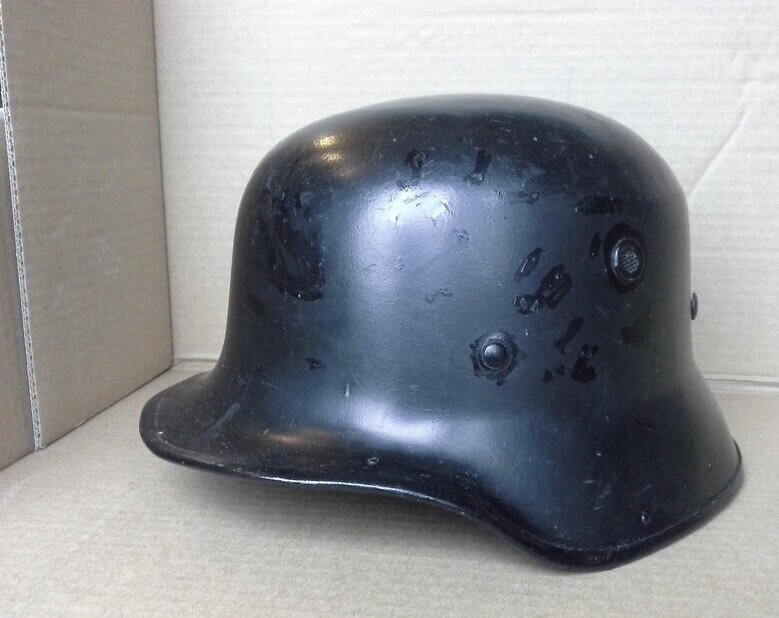 Немецкие стальные шлемы отдельно, другие страны тоже отдельно. Хотя и сейчас немецкий шлем будет. Но не стальной, а редкая модель 1934 года из вулканизированной фибры. Для нужд полиции, пожарной охраны. Для церемониальных моментов, он легкий. Даже очень, если сравнить со стальным. Далее датский шлем модели 1923 года. Далее болгарский шлем модели 1936 года Не показал подшлемник. У этого шлема он был в плохом состоянии. Вот он на другом Чехословацкий шлем модели 1929 года Далее французский шлем Адриана модели 1926 года. Он отличался от первой модели 1915 года штампованной сферой, а не составной. В таких шламах французы встретили войну, они же стояли на вооружении многих государств. В частности небольшое количество ис