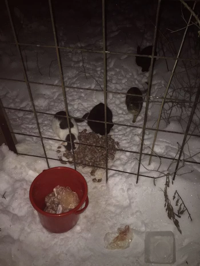 Кормлю брошенных дачниками кошек 30, 31 декабря и 1 января. Минус 10