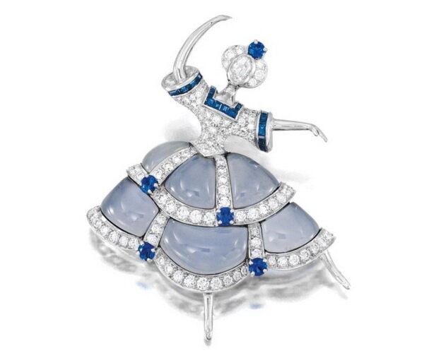 Брошь «Балерина» с бриллиантами, халцедоном и сапфирами, Van Cleef & Arpels.