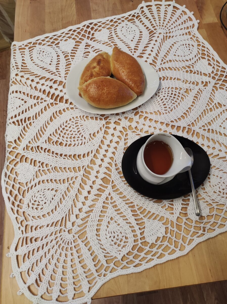 Многие согласятся, что ажурные салфетки, связанные вручную, создают уют в доме. Такое изделие можно вписать даже в современный интерьер. Салфетку можно использовать не только для сервировки стола или покрытия для тумбочек, этажерок, столиков и т.д., а также применить нетрадиционно. Из салфеток, например, можно сделать абажур для лампы. А растянув на пяльцах и, добавив декоративных элементов, из круглой салфетки может получиться домашний декор, напоминающий ловца снов. Также из салфетки можно сделать панно на стену, заключив её в рамку. Салфетка может стать хорошим подарком. И ещё множество идей. Для салфетки на фото я нашла схему в интернете. Схема проверена мной. Никаких изменений не потребовалось, легло всё ровно.