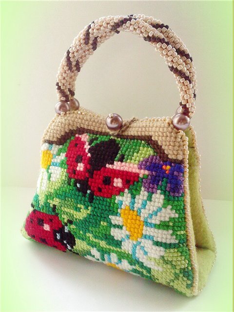Добрейшего всем дня! Марину Лапицкую в бисерном мире знают давно как очень трудолюбивого и разнопланового мастера, а ее работы поражают воображение красотой и невероятной аккуратностью. С ними мои постоянные читатели уже знакомы, а если кто пропустил - можно почитать интервью вот здесь. Но Мариша не только делает украшения из бисера и проволоки, она еще и вышивать умеет. У меня есть чудесная игольница ее работы, так что воочию смогла убедиться в ее красоте и функциональности. По таким игольницам Марина сделала мастер-класс, разместив его сперва на Бисер инфо, а затем на Бисерном дайджесте. Но поскольку оба сайта прекратили свое существование, выкладываю результат ее трудов здесь. Уверена, он для многих будет полезным. Для изготовления сумочки-игольницы понадобятся: На канве делаем разметку сумочки, затем наносим рисунок для вышивки. Его можно выбрать любым, главное, чтобы в высоту он был не более 35 клеточек-крестиков. Полностью заполняем лицевую поверхность сумочки вышивкой и обрезаем