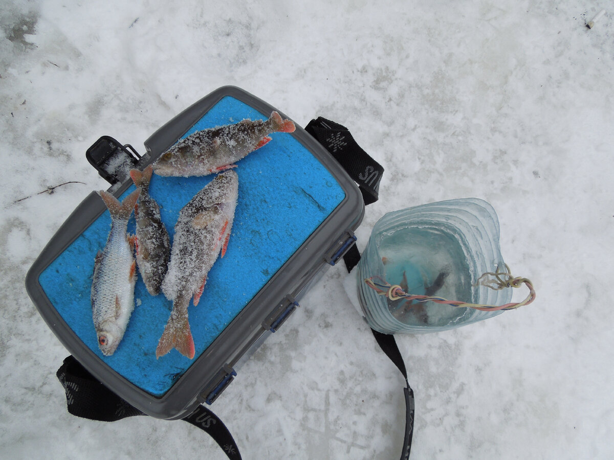 Между тем, на лед подтягиваются новые рыбаки. Тут и знакомый " безмотыльщик". От него узнаю, что по озеру не клюет совсем. Ни у кого. Все ловят возле ручья и в самом. Разгар глухозимья? Хоть и рановато, вроде бы. В ручье мне также составляет компанию пожилой рыбак. За ловлей по-немногу переговариваемся, так бесклевье кажется короче, да и при клеве, тоже не сильно мешает. Узнаю много интересного о прошлом этого озёра и других окрестных. Кроме того, теперь знаю, где "обловились" в прошлом году.