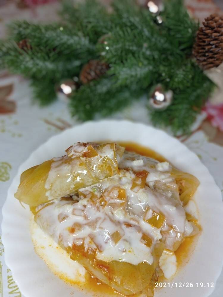 Ингредиенты: капусты, свиного фарша, крупная луковица, риса, Укроп, кинза, Сушеный базилик (если нет, то прованские травы), Соль, перец , воды (в фарш для сочности), Зажарка: , крупная луковица, Томатная паста , Вода, Сливочное масло для жарки Способ приготовления: Для начала сделаем зажарку (половина пойдет в фарш, а другая сверху на голубцы) Лук порезать мелко, обжарить на сливочном масле, добавить томатную пасту и воду. Тушить до закипания. Фарш: Перекрутить мясо через мясорубку, мелко нарезать маленькую луковицу. Добавить промытый рис, зелень, базилик, половина остывшей зажарки, соль, перец перемешать. Фарш готов. У капусты вытащить кочерыжку, поставить её в кипящую воду, бланшировать пару минут и вытаскивать по одному листочку. Срезаем грубую часть листочка, заворачиваем голубцы. Складываем в кастрюлю и заливаем сверху оставшейся зажаркой и накрываем тарелкой. Ставим на огонь налить немного воды и варить на медленном огне минут 40.