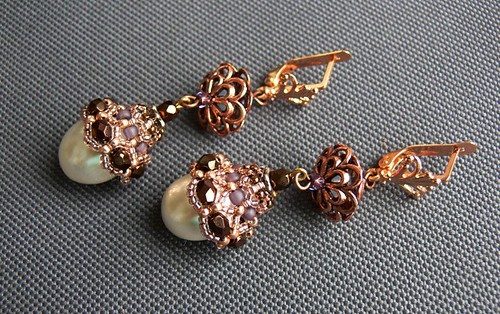 Добрейшего всем дня! Этот мастер-класс опубликовала на Бисер инфо Надежда Новикова (ник Odnoznachno). Шапочки получаются очень красивыми, так что с радостью переношу этот полезный материал в безопасное место. Дальше - текст и фото автора МК Источник вдохновения - украшения Анны Брагинской. Мы же понимаем, что это некий базовый вариант? Здесь главное понять принцип, из которого вытекают конусы разной длины, диаметра основания, цвета, фактуры и т. п. Update: в комментариях неоднократно возникала идея использовать подобные колпачки для толстых жгутов. Для данной чашечки понадобится: Первый ряд - это граненые коричневые бусинки (4 мм) и Тохо № 11 . Набираем сколько надо, чтобы закрыло макушку жемчужины-оливки. Целесообразно конечно подобрать четное число, чтобы потом уменьшать диаметр, соединяя по две бисеринки. Замыкаем первый ряд в кольцо, делаем узелок, оставляя хвост нерабочей нити где-то 20 см (не меньше) на завершающую нижнюю окантовку "шапочки", ее я делала в последнюю очередь. Д
