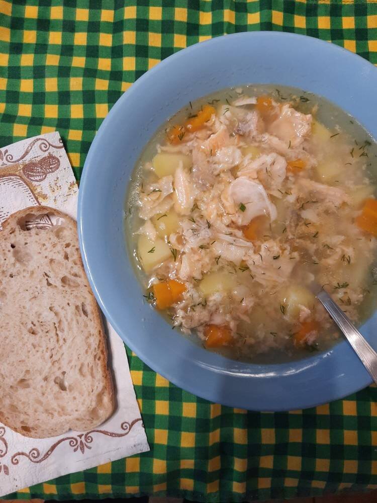 #новыйгод Ингредиенты: Набор для супа из семги, картофеля, пшена, моркови, репчатых лука, Укроп, Соль, перец, лавровый лист по вкусу, воды Способ приготовления: Залить рыбу кипящей водой, варить, снимая пену, до готовности рыбы. Лук и морковь очистить, крупно нарезать, картофель очистить и нарезать кубиком, порубить зелень. Из готового бульона достать рыбу, снять все кусочки мяса, а бульон процедить. Поставить бульон на огонь, добавить лавровый лист, соль, перец. Положить картофель и пшено, довести до кипения, добавить нарезанные овощи и кусочки рыбы. Варить суп на умеренном огне, помешивая до готовности картофеля. За 2-3мин до готовности добавить в суп зелень. Приятного аппетита. Если Вам понравился рецепт: буду рада увидеть Ваши фотоотзывы и комментарии