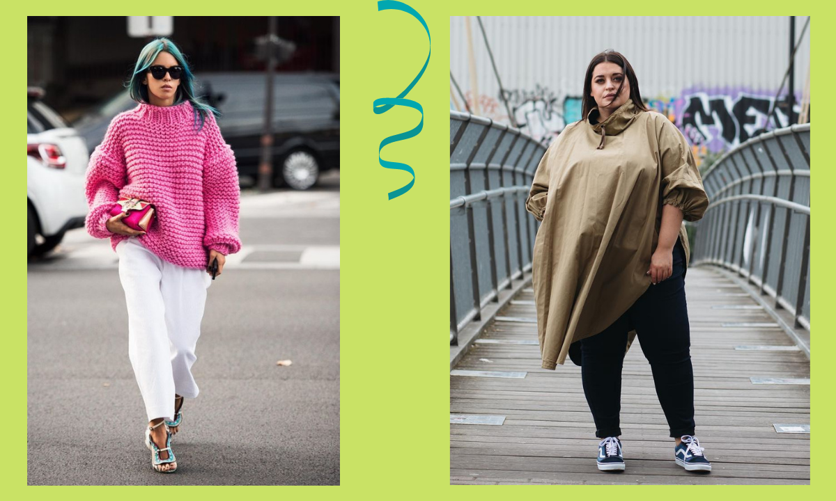- А что же делать с вещами оversize, если у вас пышные формы? Существуют два типичных заблуждения: