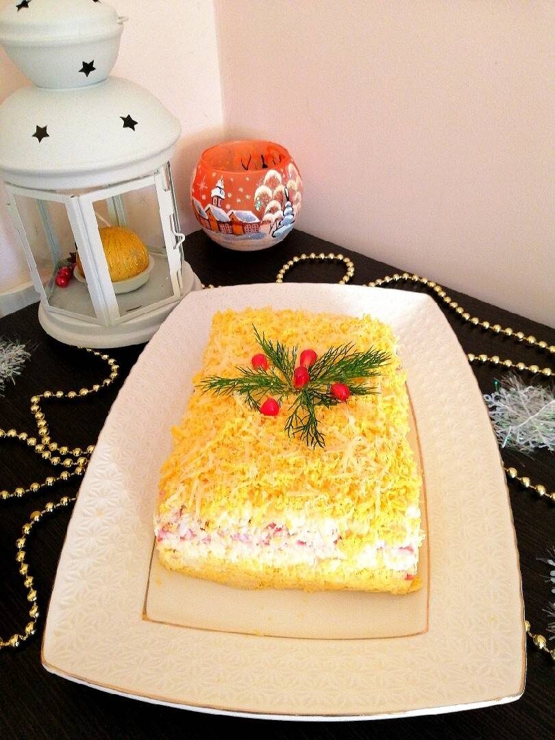 #презентація Ингредиенты: крабових паличок, плавленних сирка, яйця, Майонез, Часник Способ приготовления: 12 крабових паличок акуратно розкрутити але після їх повного розмороження Підготуємо начинку Натерти на терці 2 плавленних сирка 4 варені яйця та 1 зубчик часнику Посолити поперчити та заправити майонезом На тарілку викладаємо по дві розкручені крабові палички перемащуємо начинкою повер знову палички і так далі Верх затираємо вареним жовтком та твердим сиром Ну дуже смачно!!! Готуйте і Смакуйте