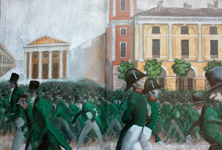 В октябре, подав прошение министру Закревскому, Гоголь уже ноябрём зачисляется на службу в Департамент государственного хозяйства и публичных зданий Министерства Внутренних Дел. Незадолго до этого даже пытался устроиться в театр, но на прослушивании не обнаружил дарований, хотя, помнится, в гимназии снискал на этом поприще немалый успех - особливо в ролях комических старух. Напоминает полную капитуляцию. "...не думайте найти во мне хотя искру гордости..." Очень похоже таки на то, что строптивый провинциал прожёван столицею, да и выковырян из её огромного рта зубочисткою будто досадный кусочек телятины, застрявшей меж зубов. Или... нет? Узнаем позже... Путешествие по Петербургу непременно будет продолжено, равно как и изыскан таки ответ на титульный вопрос: как же всё-таки сделать карьеру в имперской столице?