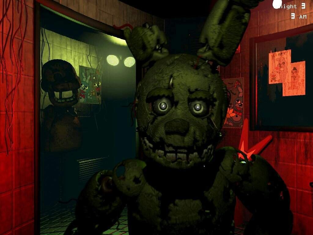 Спрингтрап является поношенной версией Пружинного Бонни из самой первой пиццерии и соответственно представляет из себя аниматроника в виде антропоморфного кролика. У него достаточно плотное телосложение, однако он куда менее массивен, в отличие от других версий Бонни. До того, как выйти из строя, Спрингтрап имел жёлтый цвет костюма, но вследствие процессов старения материала, обшивка обрела зеленоватый оттенок. Спрингтрап способен функционировать как полноценный аниматроник и как костюм, управляемый человеком внутри него. По этой причине он оборудован пружинными замками, которые завинчиваются вручную и могут слететь от любого воздействия: влаги, касания, дыхания и даже сердцебиения. Корпус робота-кролика, практически везде состоит из потёртого плюша, который покрывают безобразные дыры и порванные провода, а под корпусом находится искалеченное тело залезшего туда Уильяма Афтона. Он имеет толстые конечности с плотно прилегающими накладками на плечах и коленях. Так как ранее Спрингтрап яв