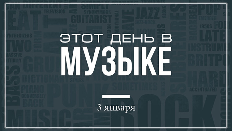Музыкальную историю делали и делают артисты разных жанров и стилистических направлений. Это и безоговорочно признанные музыканты, и представители локальной сцены. В подборке указаны только некоторые из них. Так как рассказать обо всех – невозможно. Артисты из этого списка выбраны по-нашему усмотрению вне зависимости от их вклада и влияния в музыкальную индустрию. 3 января 1946 года родился Джон Пол Джонс — английский музыкант, мультиинструменталист, музыкальный продюсер, композитор, аранжировщик. Наиболее известен как бас-гитарист и клавишник группы Led Zeppelin. В 2011 году признан одним из лучших бас-гитаристов всех времён согласно опросу, проведённому журналом Rolling Stone. 3 января 1954 года родился Росс Фридмен — американский музыкант, гитарист, наиболее известен как один из основателей групп The Dictators и Manowar, участник Shakin' Street и сольный исполнитель. 3 января 1973 года родился Андрей Шабаев-Маркин — российский музыкант, гитарист и вокалист групп 4ЕРВОНАРУТТА и Прикл
