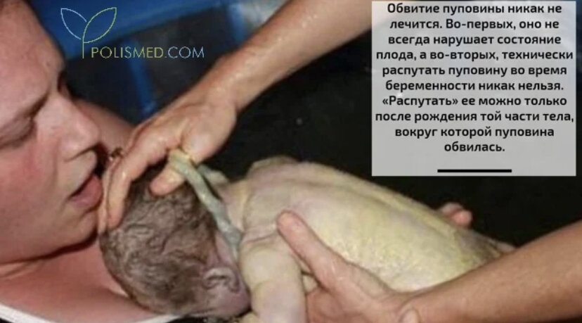 Обвитие пуповины никак не лечится. Во-первых, оно не всегда нарушает состояние плода, а во-вторых, технически распутать пуповину во время беременности никак нельзя. «Распутать» ее можно только после рождения той части тела, вокруг которой пуповина обвилась. Если это шея, то достаточно, чтобы родилась головка для освобождения малыша от петель. Если же это не единственный узел, то придется вывести туловище, чтобы осторожно снять обвитую петлю со спинки или ножки
