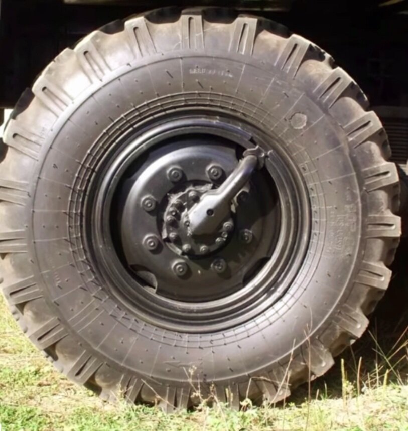 На русских грузовиках мв можем увидеть на колесе какуе-то ручку. Сегодня мы расскажем что это и для чего нужно. Оказывается это защитный колпак для шланга. А шланг это подкачька колёс для грузовика. В любой момент водитель из кабины грузовика может регулировать давление в шинах. Необходимо для лучшего передвежения в разных погодных условиях: грязь, снег, песок, болото.