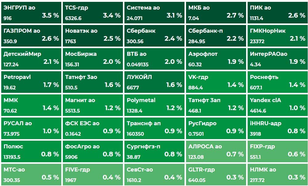 Всем привет! Я еще в конце декабря писал, что, похоже, произошел разворот на российском фондовом рынке и началось ралли Деда Мороза. 31 декабря, когда российские биржи уже не работали, депозитарные расписки наших компаний продолжали торговаться на западных площадках и большинство позиций торговалось со значимым плюсом. Сегодняшнее утро только продолжило данную тенденцию. Я вчера закинул 40 тысяч рублей на ИИС с целью начать покупки пока цены еще сильно не выросли, но, открыв приложение сегодня утром, увидел, что рынок пребывает в эйфории. На момент написания статьи в плюсе более чем на 3%: Эн+, Тинькофф и АФК Система. Более 2%: МКБ, ПИК, Газпром, Новатэк, Сбер, Норникель, Детский мир, МосБиржа и ВТБ. Я уже писал, что ИИС у меня служит исключительно для получения налогового вычета и генерации дивидендного потока, поэтому идея была выбрать, что-то из акций, который обеспечат гарантированную дивидендную доходность в 2022 году на уровне 10% и выше. Из претендентов на покупку вчера видел
