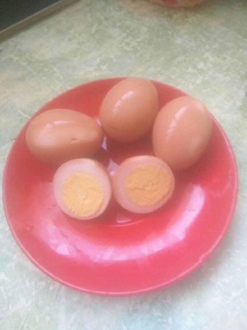 Ингредиенты: куриных яйца, свекла, чили перца, корицы, перца, сахара, соли, чеснока, яблочного уксуса, тмина, гвоздики Способ приготовления: Отварить яйца в крутую, остудить и почистить. Свёклу (можно отварить, можно сырую, это влияет на цвет) натереть на терке. Чили перец разрезать пополам. Все ингредиенты кроме яиц поместить в кастрюлю с водой, довести до кипения и кипятить одну две минуты. Яйца поместить в пол-литровую банку. Маринад процедить и залить им яйца, плотно закрыть и оставить в холодильнике на три дня. Через три дня готово к употреблению. Приятного аппетита!!!