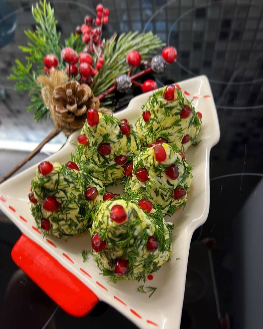 Ингредиенты: плавленого сыра, твёрдого сыра, чеснока, яйца, орехи или фисташки, огурец (по желанию), укроп, крекер, майонез Способ приготовления: Все ингредиенты натереть на мелкой тёрке, добавить майонез и перемешать. Сформировать ёлочки, обвалять в нарезанном укропе и поставить на печенье крекер. Украсить зёрнами граната. С Новым годом!🎄✨