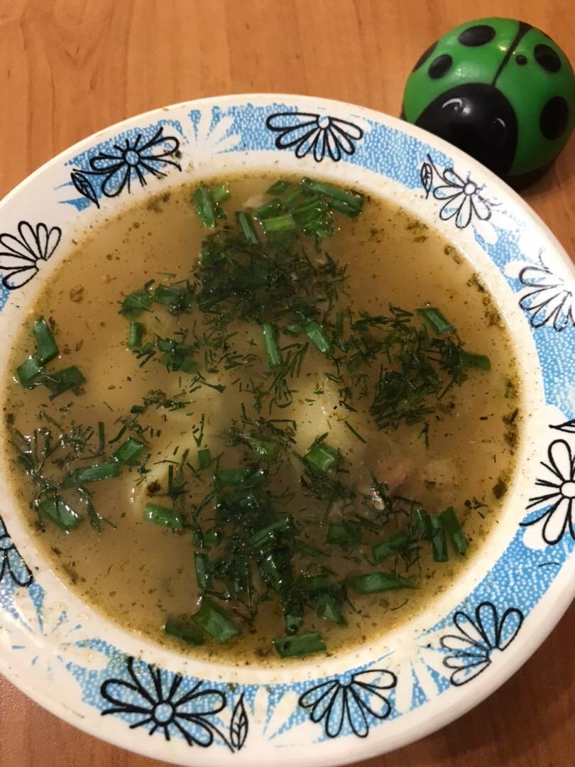 После обильных застолий этот суп очень подходит для утренней трапезы. В рецепте используются бараньи рёбрышки, которые я заменила просто куском баранины. Ингредиенты: бараньих ребрышек, картофелины, луковица, сливочного масла, соль, перец горошком, лаврушки, приправы для мяса, зелень укропа,кинзы,петрушки или ложку сухой приправы для баранины Способ приготовления: Лук мелко покрошить и обжарить на сливочном масле. Потом сюда добавляют рёбра и обжаривают. У меня вариант попроще. Кусок баранины на кости я поставила варить бульон с лавровым листом и половинкой луковицы. Варила 1 час. Затем добавила картофель, порезанный крупными кусочками, несколько горошин чёрного перца и посолила по вкусу. Варим до готовности картофеля 20 минут. За 5-7 минут до окончания добавляем жареный лук, специи для мяса и баранины. В этот момент можно добавить зелень. По желанию можно положить рубленый чеснок при подаче. Я посыпала зелёным луком и укропом. Очень вкусно!