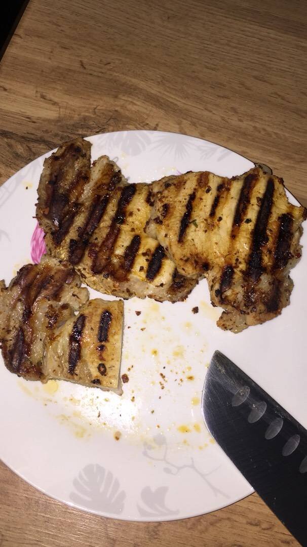 Обмазать мясо приправой без использования масла. Оставить отдохнуть мясо на 30 мин-1 час. Обжарить на гриле в течение 5 минут.