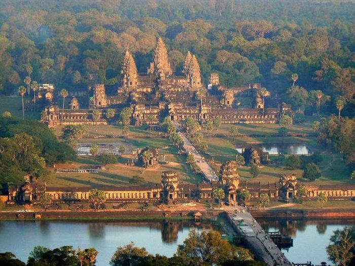 На следующий день в Камбодже нас повезли в Ангкор-Ват. Что это такое? Это огромный дворцовый и храмовый комплекс в честь бога Вишну, построенный в 12-м веке, где служились богослужения. К храму ведет длинная дорога, по которой ходить мог только король. Остальные люди ползли на коленях к комплексу по этой дороге. Интересное новшество тех лет – в храме существует система бассейнов и каналов. В них хранилась вода, которая собиралась в период дождей в течение года. Вокруг комплекса жили люди, которые обслуживали его. В конце 13-го века храм пришел в упадок, и жители переселились. Считается, что этому посодействовало изменения климата, ушла вода. Но, надо учесть, что и нашествие таиландской армии привело эти земли в запустение. Так как тайцы захватили почти все ценности кхмерской цивилизации и унесли с собой в Сиам. А ценности были замечательные и в большом количестве. Например, подводят нас к бассейну без воды, и гид показывает ямки в стенах и полу, величиной с кулак. А это, оказывается, в