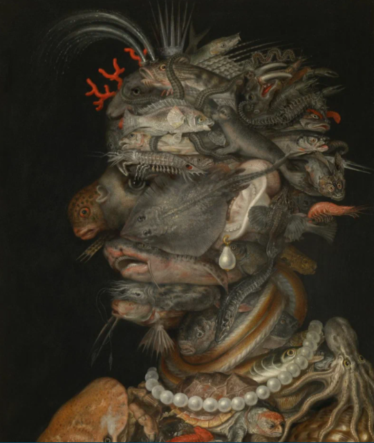 Нарисовать портрет, похожий на определенного человека, но выполненный из растений, овощей, морепродуктов или фруктов - за такую необычную задачу брался Джузе́ппе Арчимбо́льдо — итальянский живописец (1527-1593). Его уникальный стиль называли teste composte («составная голова»). Представители монаршей династий Европы Габсбурги восхищались его изобретательными художественными интерпретациями. Необыкновенное искусство Арчимбольдо сделало художника одним из величайших и самых новаторских художников-портретистов со времен Возрождения. Посмотрите сами его галерею удивительных портретов "Времена года", на которой он составил портреты в профиль из цветов, злаков, тыкв и морепродуктов. Листайте влево У Арчимбольдо были и предшественники, и последователи. По такому же принципу создавал свои невозможные образы до Арчимбольдо Босх и да Винчи. Например, на левой створке "Сада земных наслаждений" у Босха хорошо заметно фантастическое архитектурное сооружение, состоящее из разных ракообразных. А