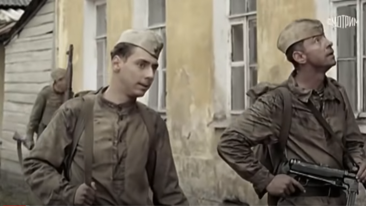 Морячок который в штрафной батальон угодил потому что пьяный сорвался с позиций за выпивкой, ну очень хочет выпить. Он заходит в какой то двор начинает искать бутылку, но вместо водки или спирта он находит там девицу и со словами, - Ох, ясноглазая! - начинает ее насиловать. За этим занятием мразотного морячка застукивает другой штрафник, видимо большой шутник и балагур. Он с довольной рожей кричит Boo - Хендехох, морячок прерывается, поворачивается и стреляет так удачно из автомата, убивая весельчака на повал, девушка с криками убегает.