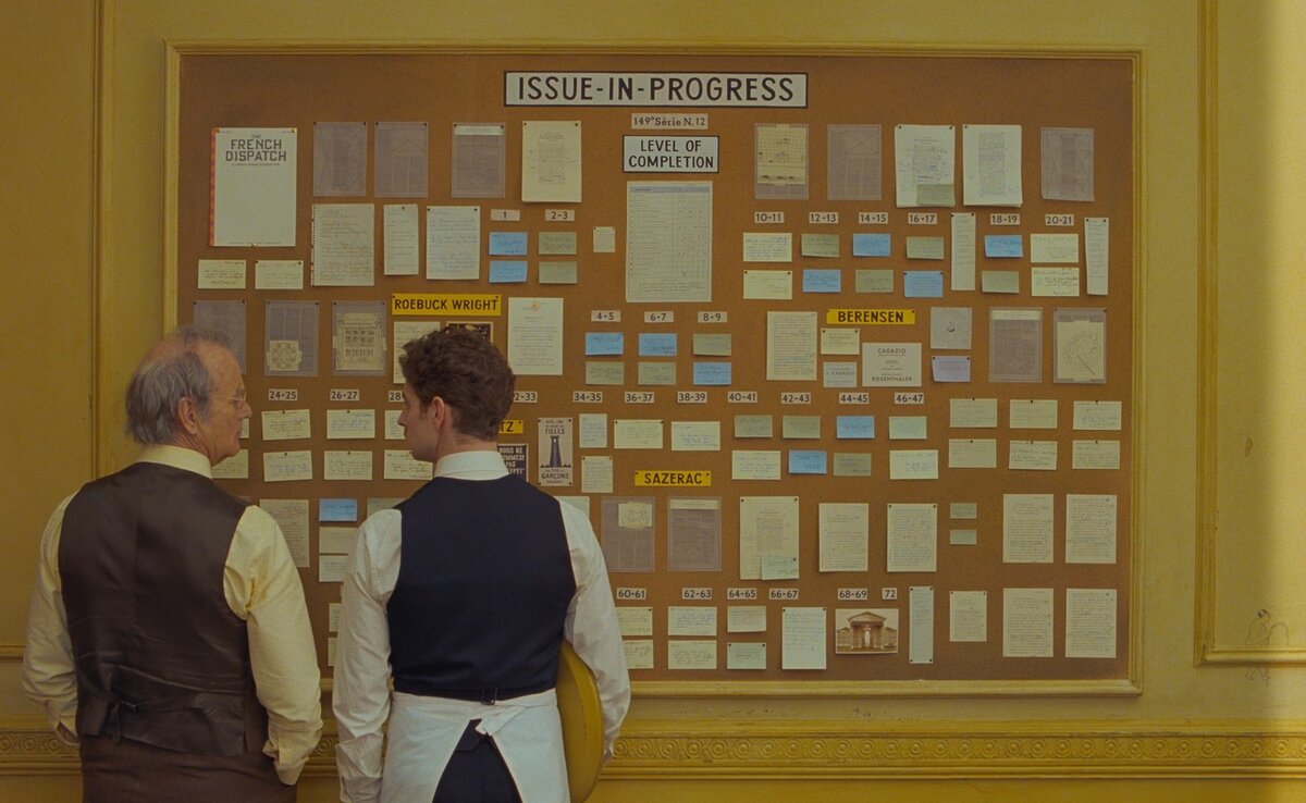 Теперь он снял "Вестник". Описывать в деталях лишённый смысла фильм также нет никакого смысла, ибо смысла нет ни в какой детали. Сюжет такой. Умер редактор французской газеты (название которой в названии фильма), в последнем номере успел одобрить три материала, вот их экранизацию мы и смотрим. Собственно, всё. Завещание редактора закрыть газету нам прочли в самом начал