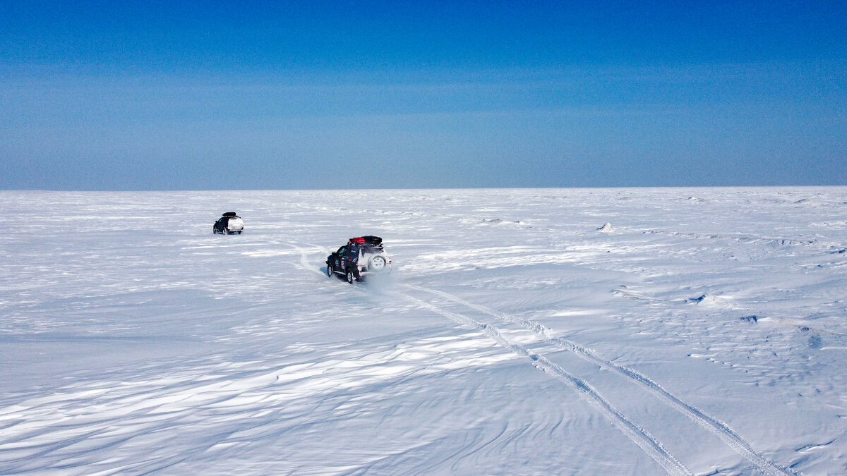 Поездка на Остров Белый появилась в моем списке спонтанно, нужно было определяться, куда я отправлюсь в зимнем сезоне, и Влад предложил. Туда мы решили пробираться по восточному берегу полуострова Ямал вдоль Обской губы, по наименее популярному маршруту. Через поселки Яр-Сале, Сюнай-Сале, Новый Порт, Мыс Каменный, Сейха и дальше строго на Север. Начали свой путь из Салехарда и отправились по зимнику в поселок Яр-Сале. Там идет хороший зимник по Оби, ехать одно удовольствие. В ночи лишь встретили сломанный УАЗ, без колеса. Перед поселком остановились на ночевку, и утром уже с новыми силами отправились в следующий пункт – поселок Сюнай-Сале. Туда еще есть чищеный зимник, а дальше уже начинается самое интересное, потому что дорога заканчивается. Изредка попадается старый трэкольный след, но после пурги там еще никто не ездил. Где-то он читаемый, и мы шли по его остаткам. Так мы направились на север вдоль Обской губы. Ехали тяжеловато, по меркам севера была оттепель, около -15 градусов. Ма