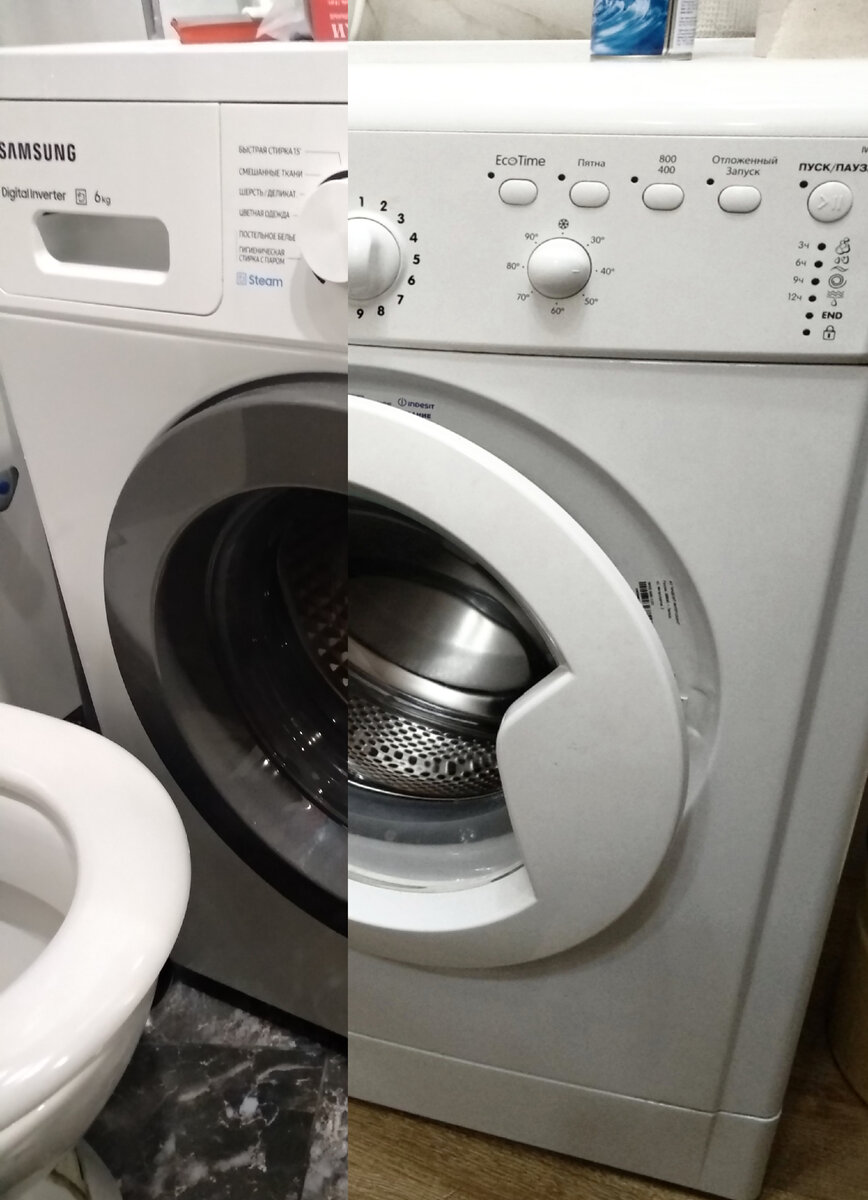 Приветствую, уважаемые читатели. Если вы задумались о замене стиральной машинки, то эта статья будет для вас полезной. Из названия статьи вы уже поняли о чем пойдет речь и, к счастью, я как раз являюсь обладателем обоих этих экземпляров. И могу поделиться своим опытом. Первая стиральная машинка - дешёвая, ее я покупал для своих родителей. Indesit iwsb 5085 - простейшая стиральная машинка с набором всего необходимого. Такие в среднем стоят 15000р., а по акции можно купить и за 11000р. Третий год работает без каких-либо нареканий. Вторая Samsung WW60A4S00VE/LP - та же самая бюджетная стиральная машинка без каких-либо наворотов, но на 10000р. дороже. Главное их принципиальное отличие - ремонтопригодность. Индезит можно отнести к разряду одноразовых стиральных машин из-за их неразборного бака. Грубо говоря, если у вас выйдут из строя подшипники, то вы их не сможете поменять без распила бака - процедуры недешевой и не очень надежной в плане дальнейшей эксплуатации. В Самсунге бак разборн