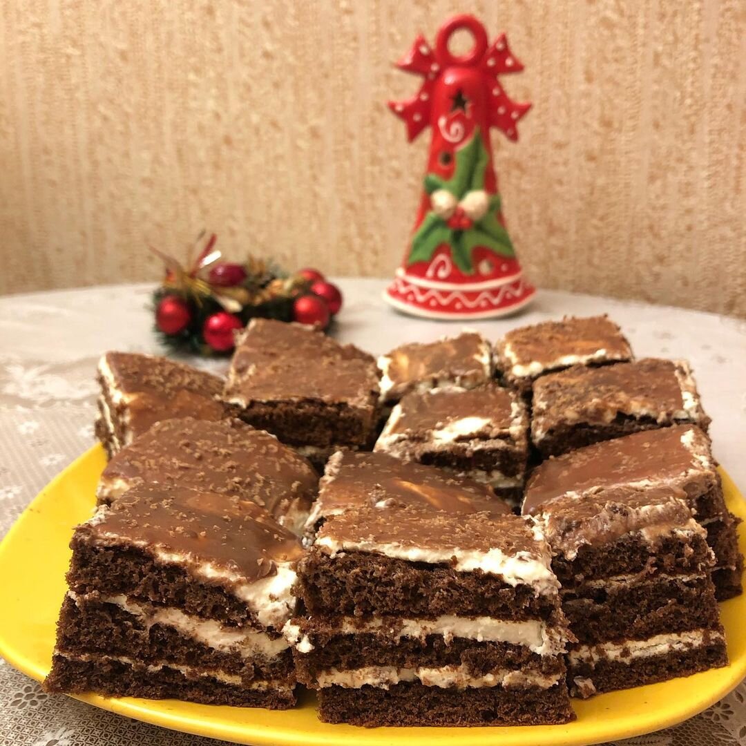 5)Растопить шоколадку с 2 ст л молока и залить торт- пирожное .