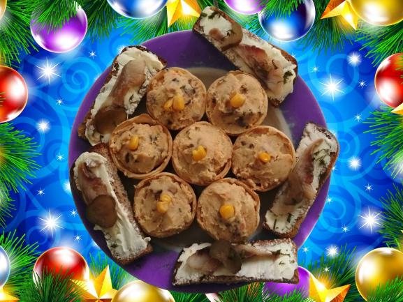 #новыйгод #тарталетки #паштет #пост Ингредиенты: тарталеток, грибов, морковь, луковица, Для паштета:, фасоли, толченых орехов, чеснока, соевого соуса, яблочного уксуса, зелень, кукуруза для украшения Способ приготовления: Грибы и лук почистить, помыть и нарезать кубиками. Морковь почистить, помыть и натереть на средней терке. Грибы обжарить вместе с морковью и луком. Приготовить паштет: Измельчить орехи и чеснок с помощью блендера, сюда же добавить фасоль, уксус, соус, зелень и хорошо взбить до однородной массы. Грибы смешать с фасолевым паштетом и выложить в тарталетки, украсить кукурузой и зеленью.