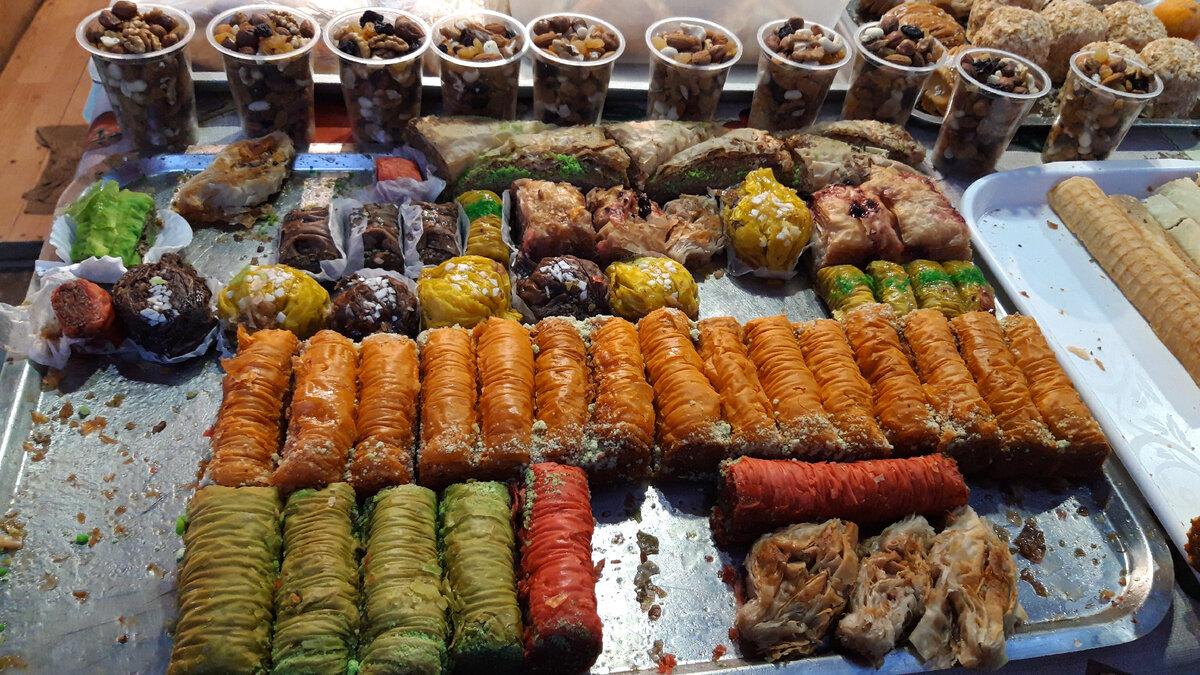 мы случайно наткнулись на палатку с необычайно красивыми восточными сладостями.