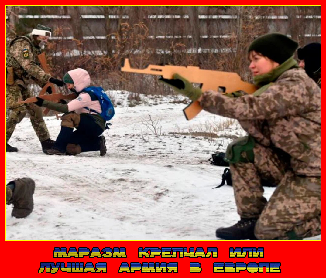 Новая коллекция доказательств причастности армии желто-голубых соседей к лучшим армиям Европы. А может быть и самой лучшей! Смотрите и комментируйте! На (в) сине-желтой стране женщин не только ставят на воинский учет, но и оружие выдают. Правда, пока только деревянное. Это или афроамериканцы в армии С. Бандеры или кто-то собрался в США. Мощная карательная бронетехника. Такую даже Джавелин не берет. Новый удобный вид камуфляжа. От лучшего модельера из Голландии. У солдата выходнiй, пуговицы в ряд... Главное чтобы костюмчик сидел. Справа министр обороны. Главное какие серьезные лица. Этим бойцам тоже настоящего оружия не хватило.