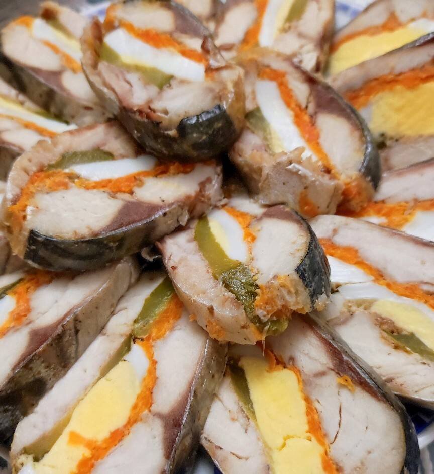 За идею благодарю @YanaRaev05 Очень вкусная и праздничная закуска ❤️в таком исполнении готовлю второй раз, очень нам понравилась😋❤️❤️. ВКУСНО. ПРОСТО. ЛЕГКО ❤️ #закуска #новогоднийстол #скумбрия Ингредиенты: свежемороженая скумбрия, морковь, луковица, вареное яйцо, маринованный огурец, соль, перец, быстрорастворимый желатин Способ приготовления: Размораживать скумбрию желательно просто на полке в холодильнике (так лучше с ней работать, когда она не совсем до конца разморозилась) моем, разделяем на два филе, выбираем все кости. Лук и морковь Пассеруем на растительном масле. Яйцо и огурец режем кружочками. На пергаментной бумаге скумбрию посолить, поперчить, посыпать быстрорастворимым желатином: выложить морковь с луком, яйцо и огурец, накрыть второй филешечкой (ее тоже посолить, поперчить и посыпать желатином) Аккуратно завернуть в пергамент, затем в фольгу. Отправляем в разогретую духовку при t 180° на 40-45 мин (ориентируйтесь по своей духовке). Но готовую рыбу ставим груз до 1 кг и