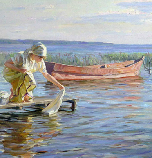 Мать полоскать белье ее отправила, она любила это, уходила в тихое место и всегда на красоту свою любовалась в воде. Мать не разрешала долго у зеркальца быть, нечего, мол, а Аксюшке-то очень хотелось каждый раз видеть себя - какая она раскрасавица. Если не постирушки, она все одно - к речке, к тихому месту, или к лесному озерку даже старалась ушмыгнуть, да и наглядеться там на себя. Скучно ей без этого становилось, а как насмотрится на себя в воде, да нахвалит себя, так снова такая самоуверенная делается, - ее Петр будет, никуда от такой красавицы не денется!