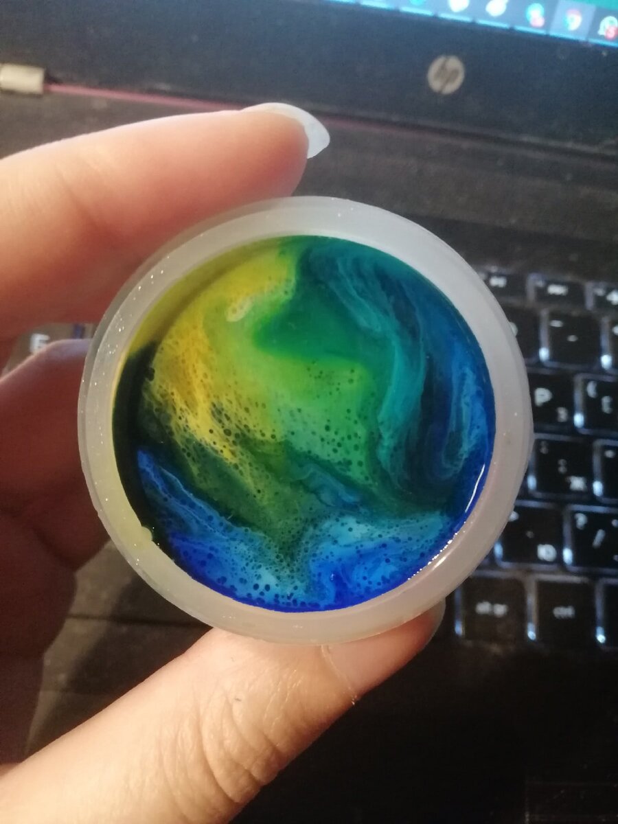 О чем идет речь? О красителях, которые используют в том числе и в эпоксидной смоле. За счет химического взаимодействия, получается очень красивый необычный результат. Как это работает? Сначала мы капаем в смолу чернила какого-либо цвета, можно разные цвета капать, далее капаем белый краситель. Белый краситель и запускает "гуляние" разные цвето в смоле. Узор движется и постоянно меняется. Что получится в итоге мы узнаем только тогда, когда извлекаем застывшую заготовку из молда. Что нужно знать для правильного результата? Основной нюанс - это густота самой смолы и вязкость (тяжесть) белых чернил (они как активирующий компонент). Чем жиже смола, тем быстрее могут чернила опуститься на дно молда (формочки) и мы получим не очень желаемый результат. Основного рисунка наверху будет не видно. Жидкая смола - речь о ювелирной. Но! Брать густую для resin art я точно не рекомендую! Почему? Потому что в густой смоле остаются пузырьки и мешает ей быть прозрачной. И рисунок будет виден плохо. Мо