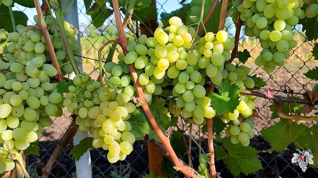 Сегодня я расскажу Вам об урожае винограда сезона 2021 года. А именно, я расскажу Вам об урожае и особенностях винограда Кишмиш Афродита. Бессемянный сорт столового винограда Кишмиш Афродита был выведен болгарскими селекционерами. Получен он был путём скрещивания винограда Чауш, винограда Кардинал, винограда Италия и винограда Русалка. В итоге был получен сложный гибрид винограда, обладающий кустами большой силы роста и хорошей урожайностью. Для полного созревания ему необходимо около 110-115 дней. Выше и ниже на фотографиях вы можете видеть первое плодоношение на трёхлетнем кусте винограда Кишмиш Афродита (дата съёмки 4 сентября 2021). В этом году созревание всех сортов и гибридных форм винограда сильно сдвинулось и довольно тяжело понять, когда виноград полностью созреет и достигнет своих максимальных кондиций. Ориентировочный сдвиг по датам созревания винограда составляет около 20-30 дней. Также я хочу отметить тот факт, что данный виноград не относится к кишмишу первого или второг