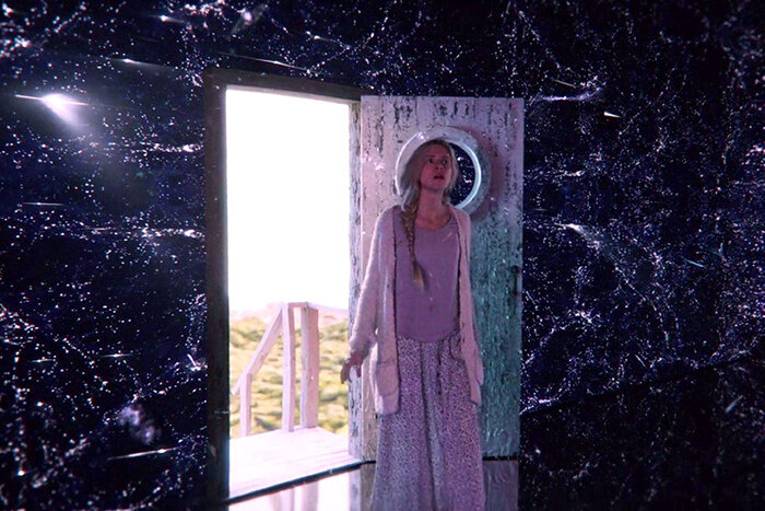 В одной сцене героиня, считающая себя ангелом, одета в светоотражающий костюм и ей нужно вырваться в иной мир – ангел Ислингтон из сериала «Задверье»?