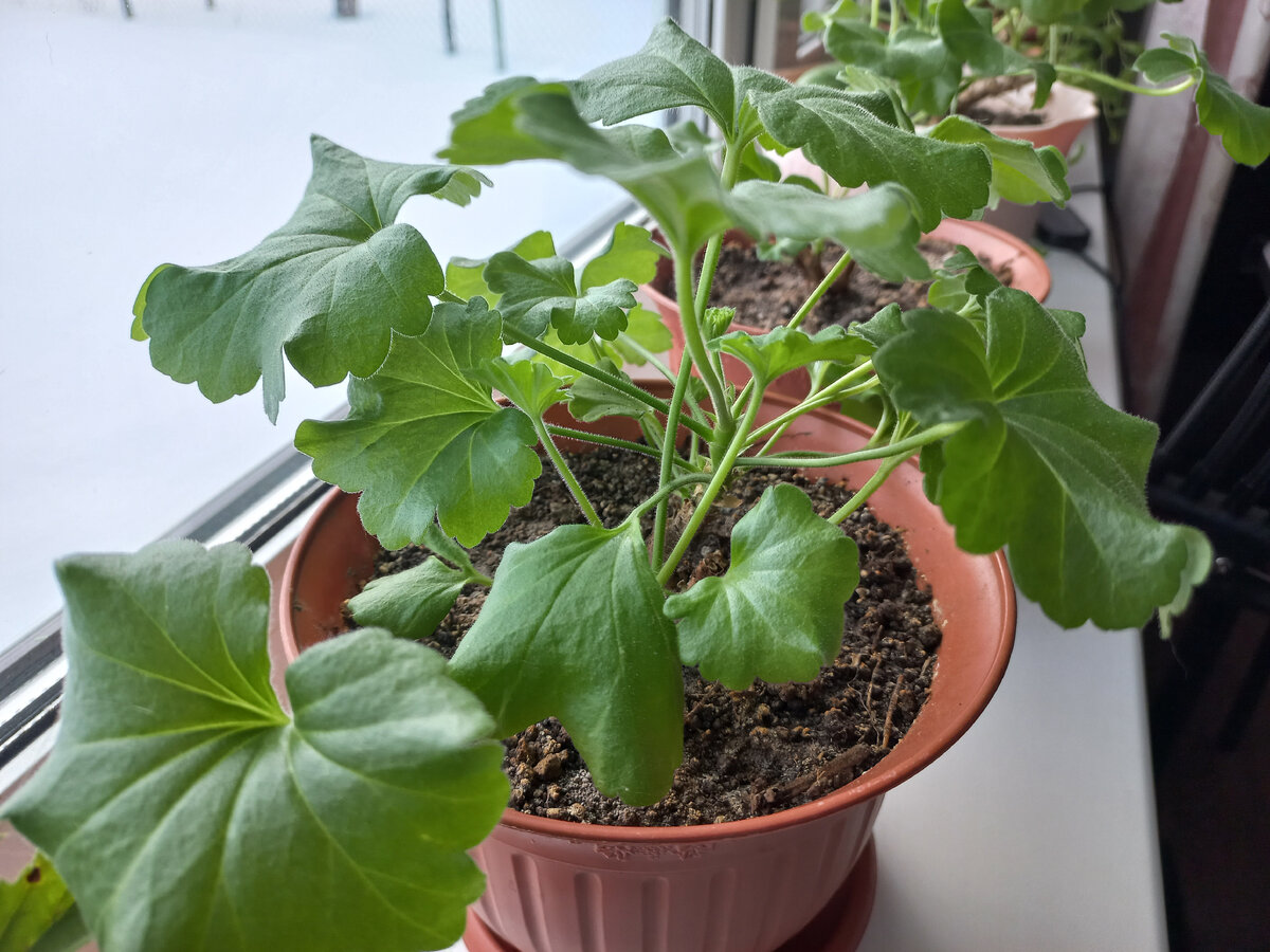 Не уверена только, что одно только описание приготовления этой подкормки понравится некоторым читателям. Уже предвижу недоумённые комментарии: "Зачем? Неужели в магазинах мало удобрений?" Да, нет, не мало, глаза разбегаются. Да вот только опытные цветоводы утверждают, что ни одно железосодержащее удобрение, даже в хелатной форме, не даёт такого эффекта. Узнала об этой подкормке я лет пять назад, когда увлекалась фиалками. На одном из форумов прочитала, что благодаря ей быстро зеленеют все хлорозные растения. Предвидя, что с этой напастью возможно столкнутся герани (пеларгонии), которые должны были зимовать на на подоконнике, ещё в начале осени я сделала следующее: Какими были герани в конце октября, можно посмотреть в публикации по этой ссылке. А вот какими они стали: И это вовсе не молодые растения, как можно подумать, взглянув на предыдущее фото: Начало января, а побеги активно растут: Листья у растений ярко зелёные, вот-вот появятся бутоны. Есть и упрощённый вариант такой подкорм